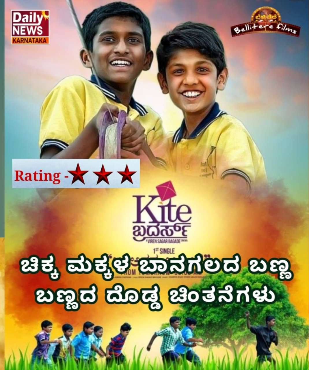 ಇಂದಿನ ಕಮರ್ಷಿಯಲ್ ಚಿತ್ರಗಳ ಭರಾಟೆಯಲ್ಲಿ ಒಂದು ಸಾಮಾಜಿಕ ಕಾಳಜಿಯುಳ್ಳ, ಎಳೆ ಮಕ್ಕಳ ಕನಸ್ಸಿನ ಚಿತ್ತಾರಗಳ ಚಿತ್ರ ಕೈಟ್ ಬರ್ದರ್ಸ್ ಚಿತ್ರ ಇದೇ ಶುಕ್ರವಾರ ನವಂಬರ್ 14ರಂದು ಮಕ್ಕಳ ದಿನಾಚರಣೆಯ ಅಂಗವಾಗಿ, ಮಕ್ಕಳಿಂದ, ಮಕ್ಕಳಿಗಾಗಿ ತೆರೆಗೆ ಬರಲಿದೆ. ಇಂತಹ ಚಿತ್ರಗಳು ಗೆದ್ದರೆ ನಿಜ ಬದುಕಿನ ಕಥೆಯ ಚಿತ್ರಗಳು ಮತ್ತಷ್ಟು ಮನಸ್ಸಿಗೆ ಹಿತವೆನಿಸುವ ಚಿತ್ರಗಳು ಬರುವಲ್ಲಿ ಸಂಶಯವಿಲ್ಲ.