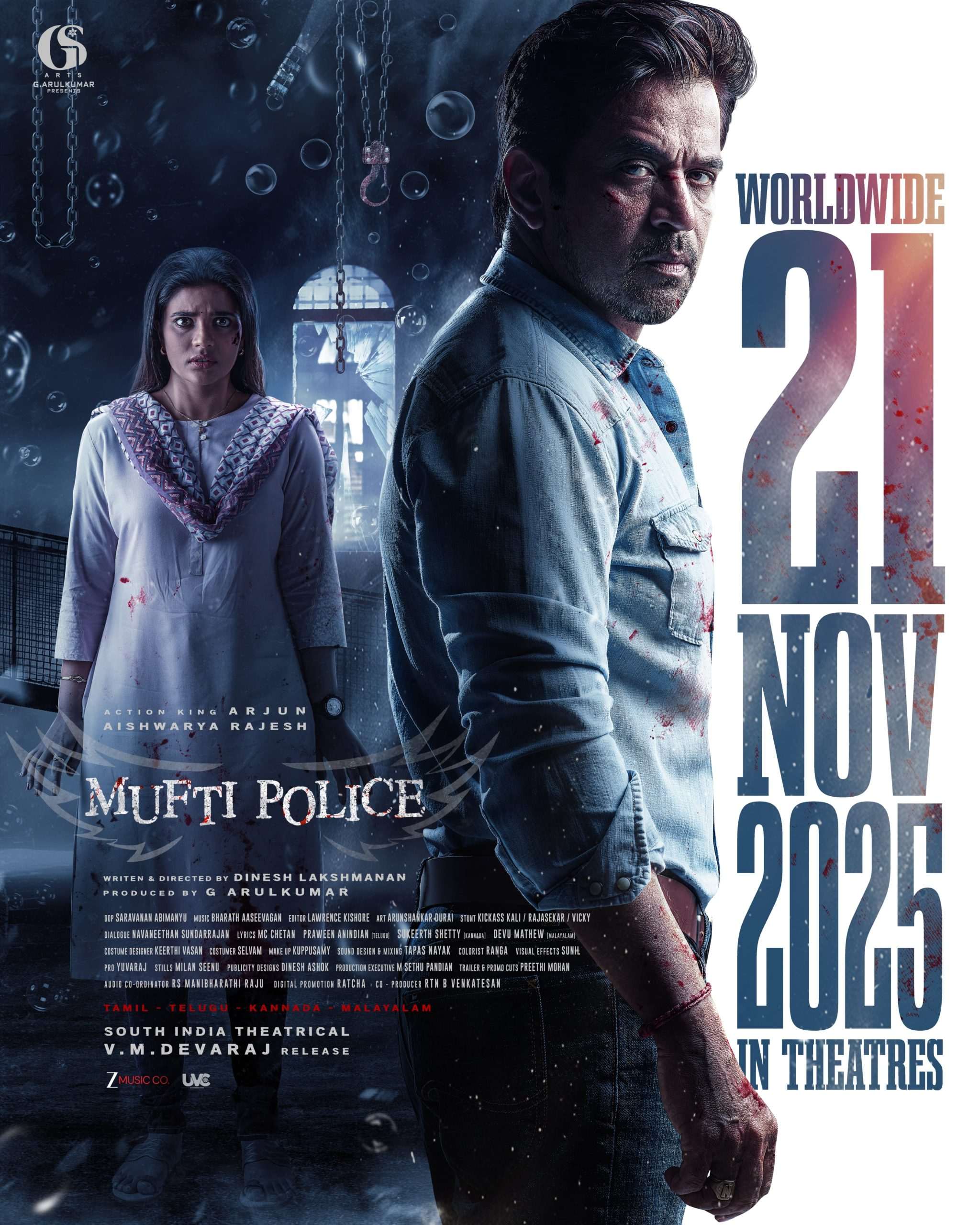 ಅರ್ಜುನ್ ಸರ್ಜಾ-ಐಶ್ವರ್ಯ ರಾಜೇಶ್ ನಟನೆಯ ಮಫ್ತಿ ಪೊಲೀಸ್ ನವೆಂಬರ್ 21ಕ್ಕೆ ಬಿಡುಗಡೆ
