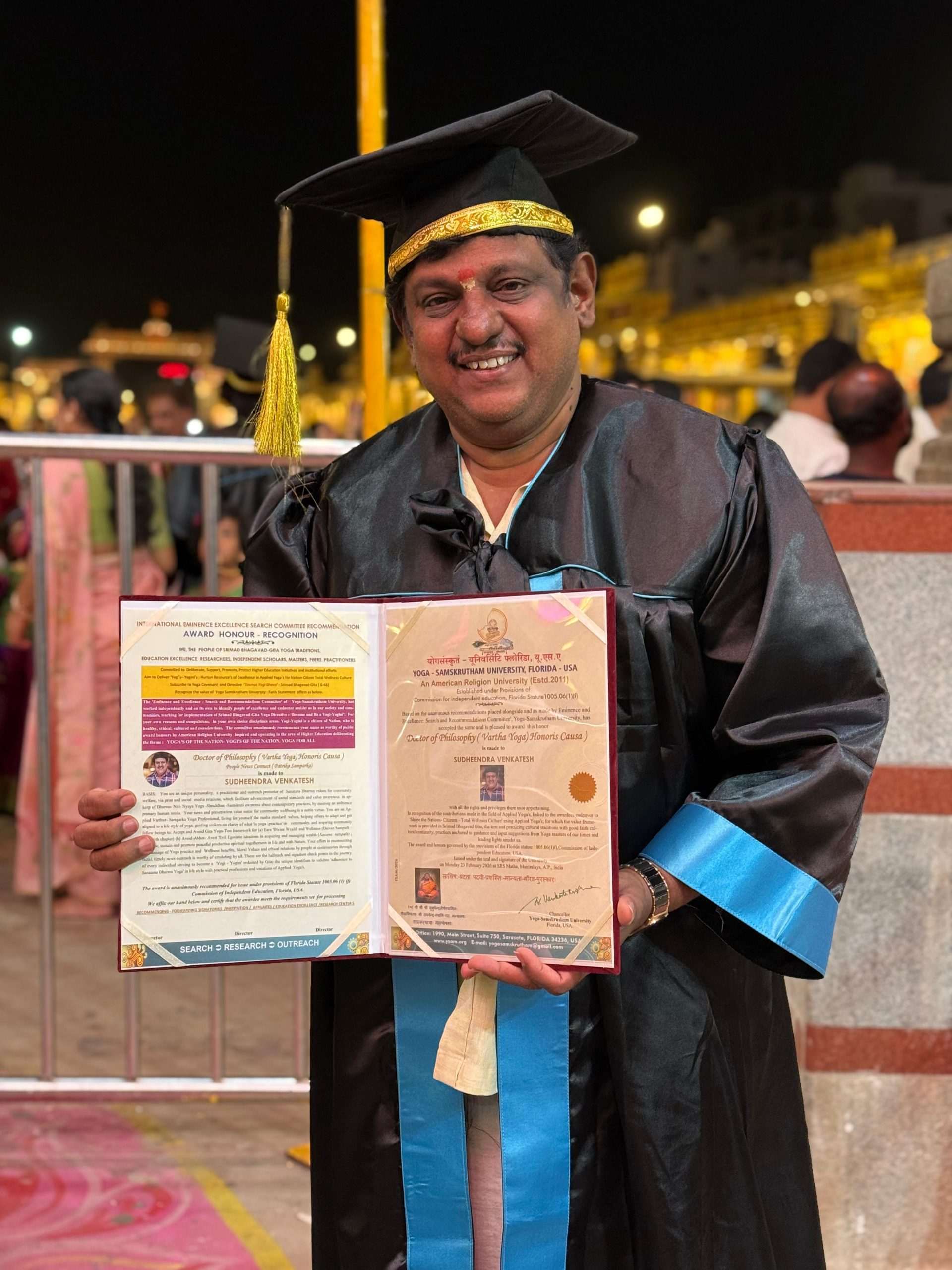ಪ್ರಚಾರಕರ್ತ ಸುಧೀಂದ್ರ ವೆಂಕಟೇಶ್ಗೆ ಅಮೇರಿಕಾ ವಿಶ್ವವಿದ್ಯಾಲಯದಿಂದ ಗೌರವ ಡಾಕ್ಟರೇಟ್